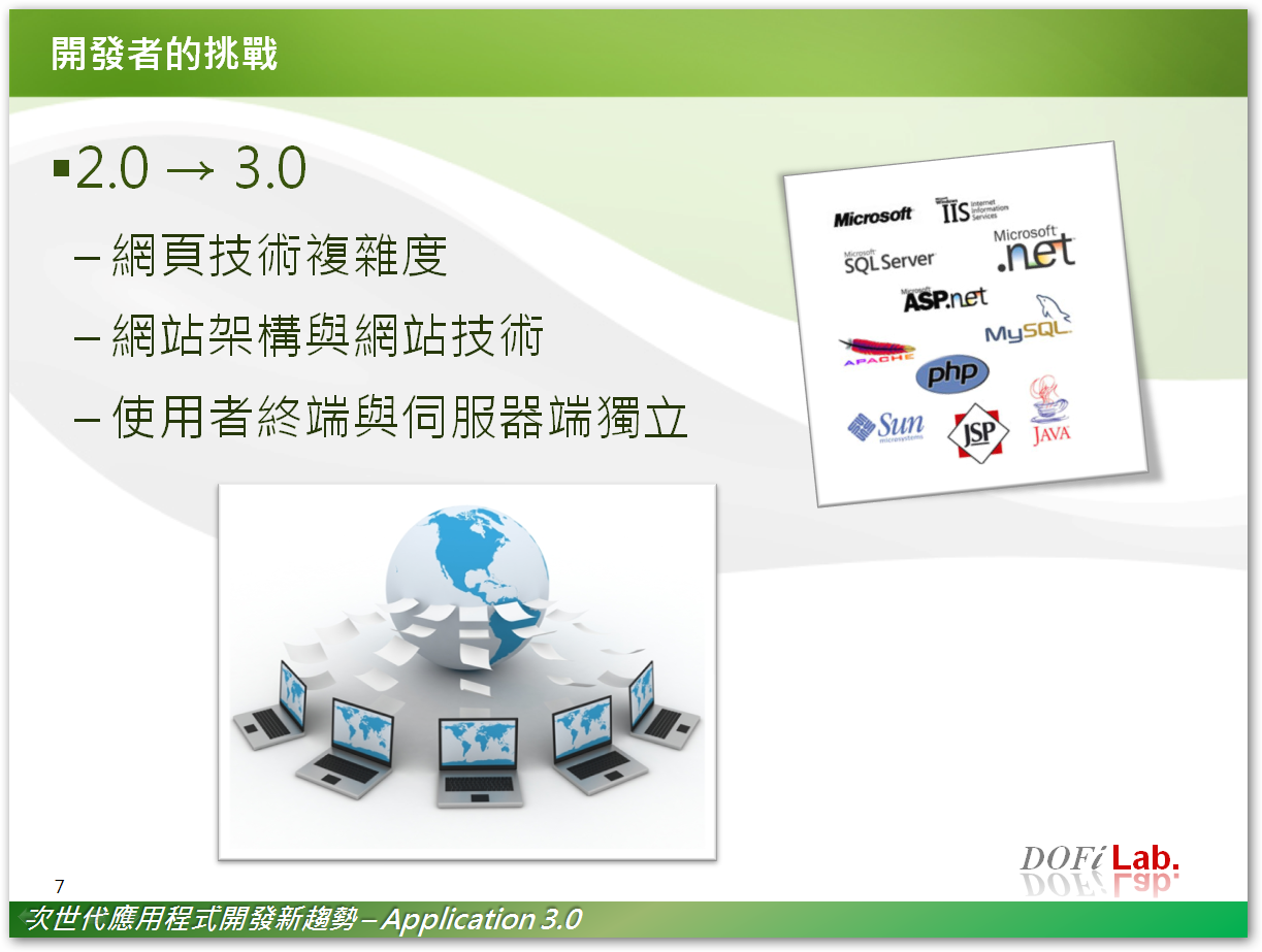 從上一篇文章「就說不是雲端了,是App 3.0啊!」當中,大家應該都有瞭解到DOFI在此對應用程式技術架構的世代定義方式了。